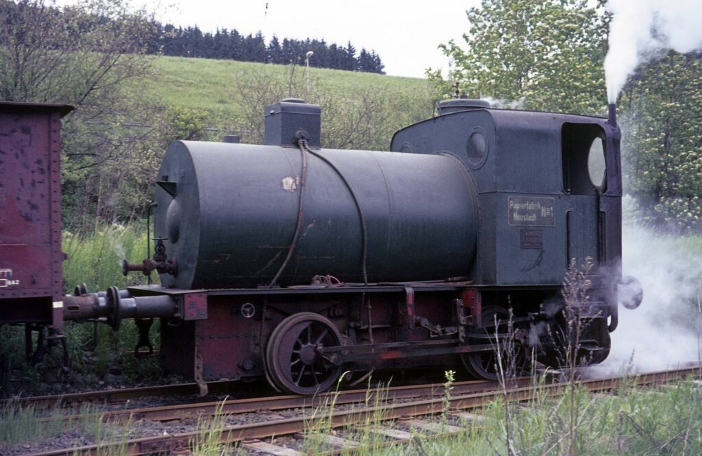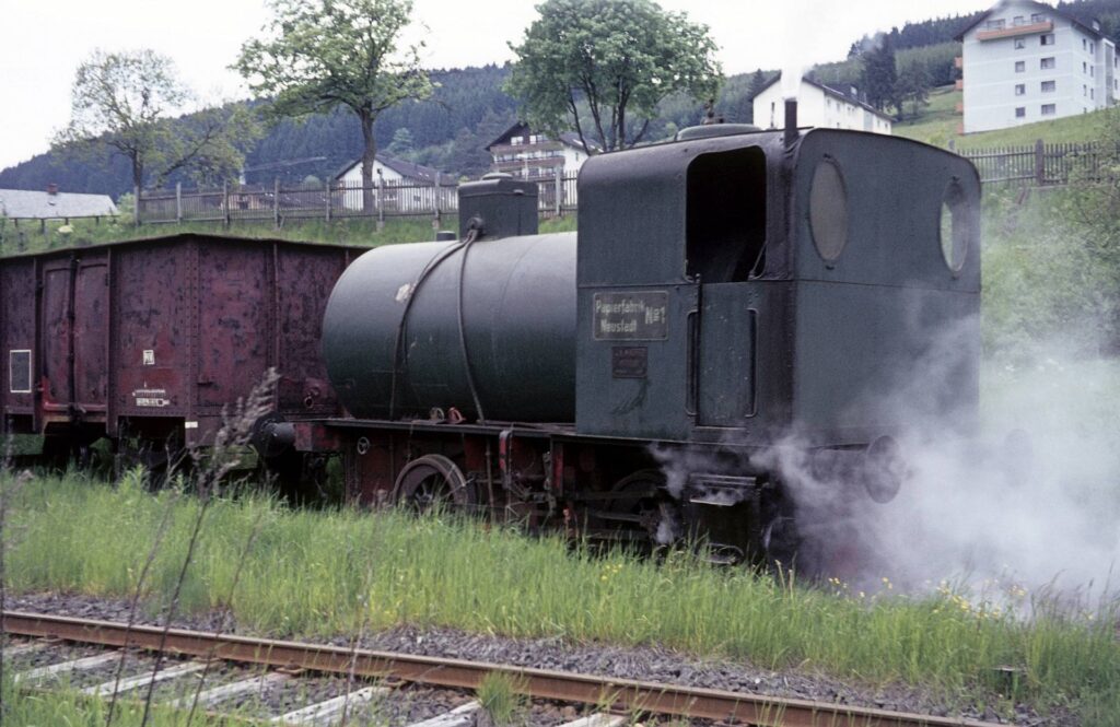 Hier dürfte die Werkslok 1, auch „Sommerlok“ genannt (Betriebs-Nr. 74), zusammen mit der, sechs Jahre später von der Lokomotivfabrik Hohenzollern beschafften, weiteren Dampfspeicher-Lok, „Winterlok“ genannt, mit dem gesamten Rangiergeschäft auf dem Werksgelände und dem ca. 3,50 km langen Verbindungsgleis zum Bahnhof Neustadt beschäftigt gewesen sein. Es wird sich dabei im wesentlichen um den Verschub der eingehenden Holztransporte und abgehenden Waggons mit Papiererzeugnissen gehandelt haben.